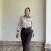 Pantalón chocolate talle alto y campana