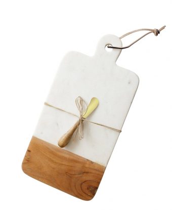 Tabla Cortar Mármol Blanco Acacia