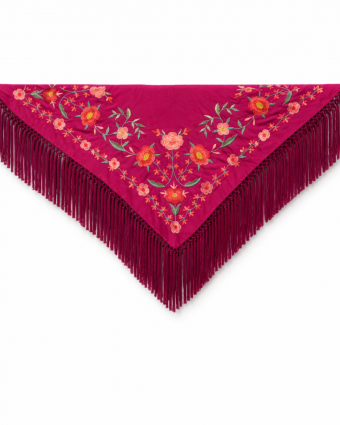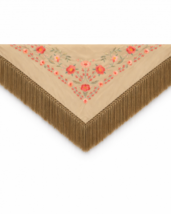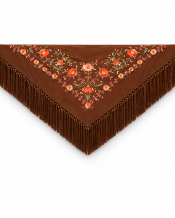 Mantón Estrella Rectangular 75 x 75 Bordado Azul Pavo Grisaceo