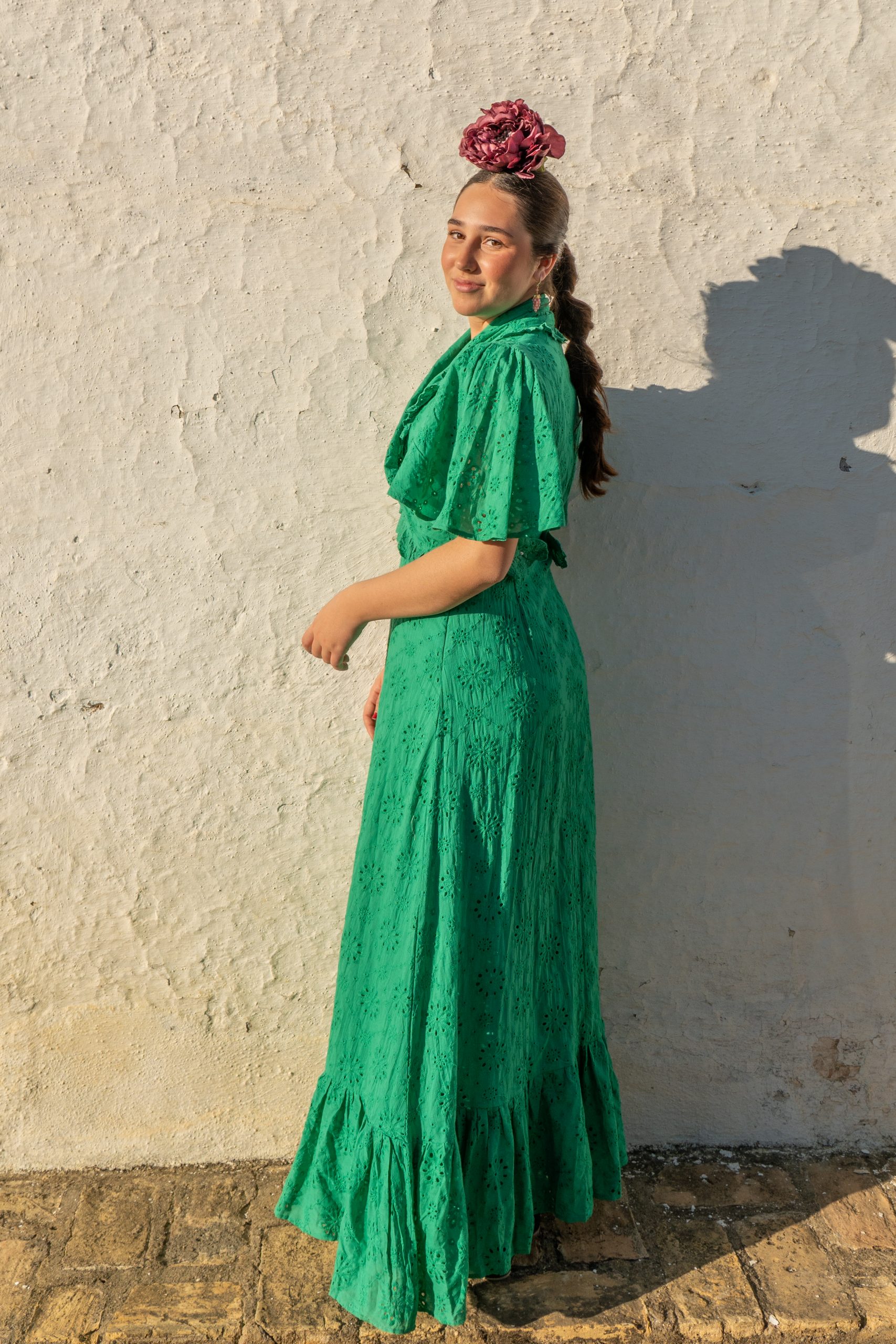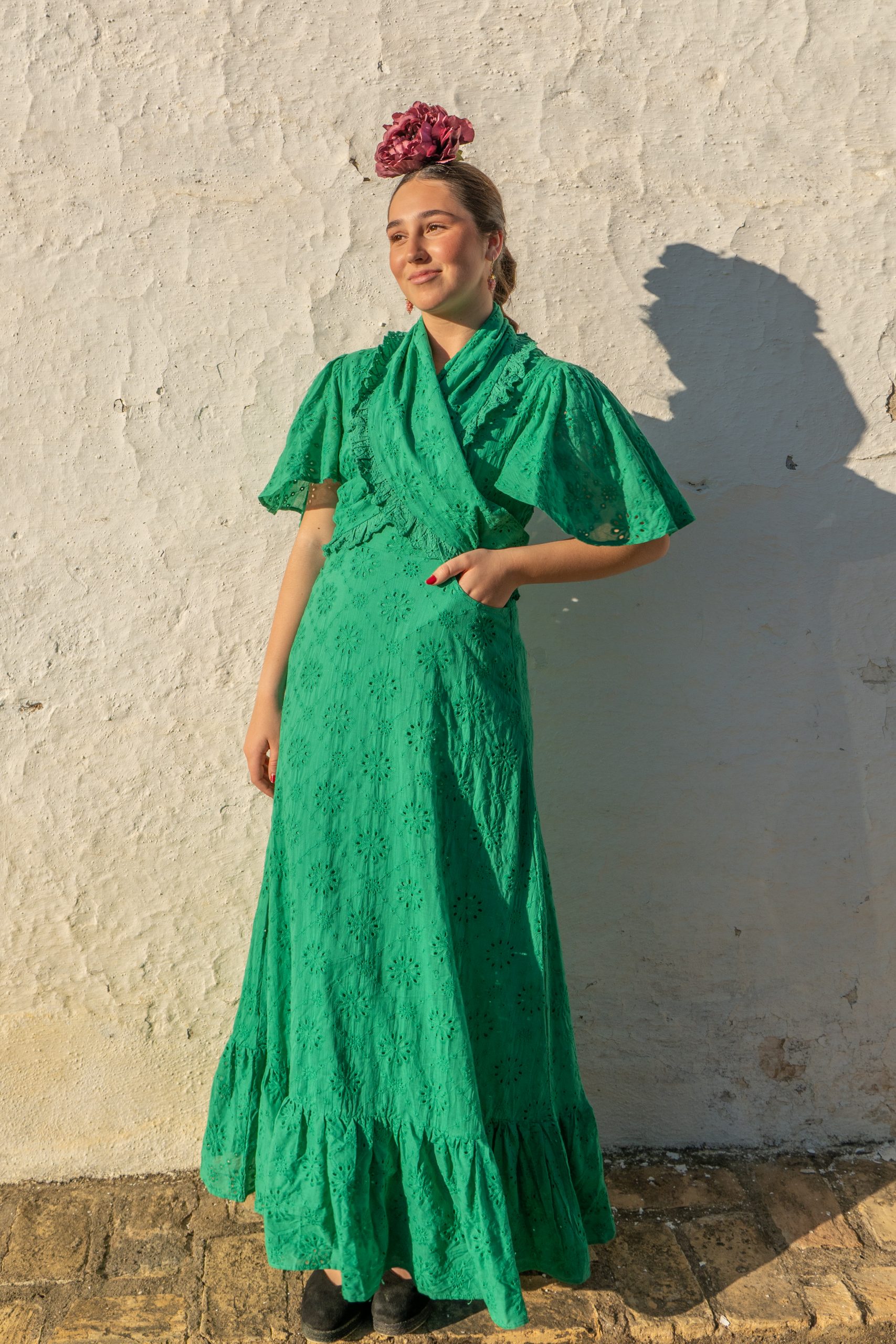 Hay colores que hablan de tradición y el verde de nuestra Bata Rociera Doñana es, sin duda, uno de ellos. Diseñada para la mujer que vive la romería con intensidad pero no quiere renunciar a verse impecable, esta pieza es un homenaje a la artesanía andaluza.