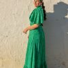 La Bata Faura Verde: Confeccionada con esmero, con su característico cuello con lazada fruncida y un generoso volante canastero que aporta el movimiento justo al caminar. Es la base perfecta para tu comodidad.