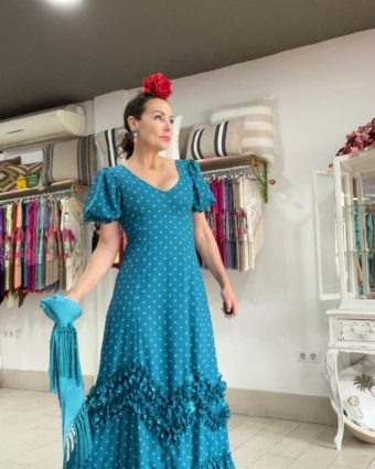 ¿Es apta para montar a caballo? Su falda tiene el vuelo suficiente para subir al caballo o al carro con comodidad, aunque es un diseño especialmente favorecedor para quienes hacen el camino a pie.