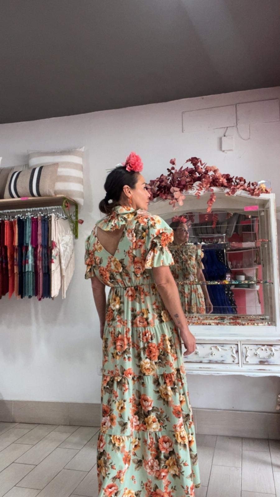 • La Bata Faura Floral: Confeccionada con esmero, con su característico escote trasero en V y volantes fluidos que aportan un movimiento precioso al andar.