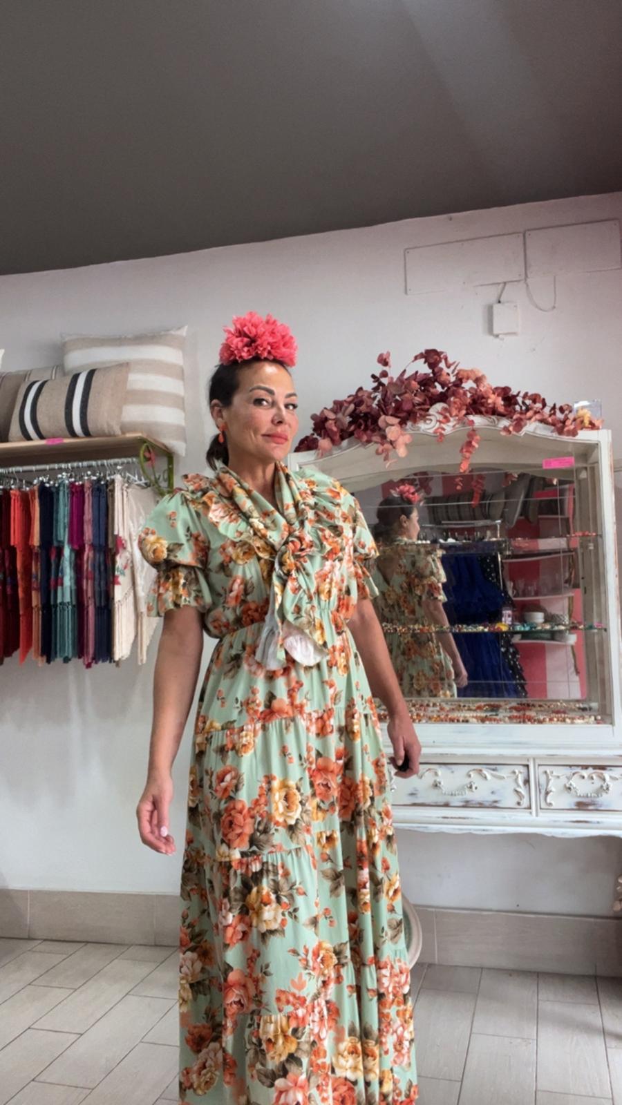 Bata Rociera Floral Verde Menta con Piquillo y Flor de Regalo | Ana Faura