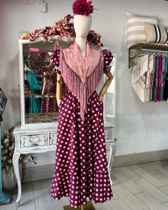 El precio indicado corresponde exclusivamente a la bata de romería. Los complementos como el mantoncillo bordado, la flor y los pendientes se venden por separado en nuestra sección de accesorios para que puedas crear tu look personalizado.