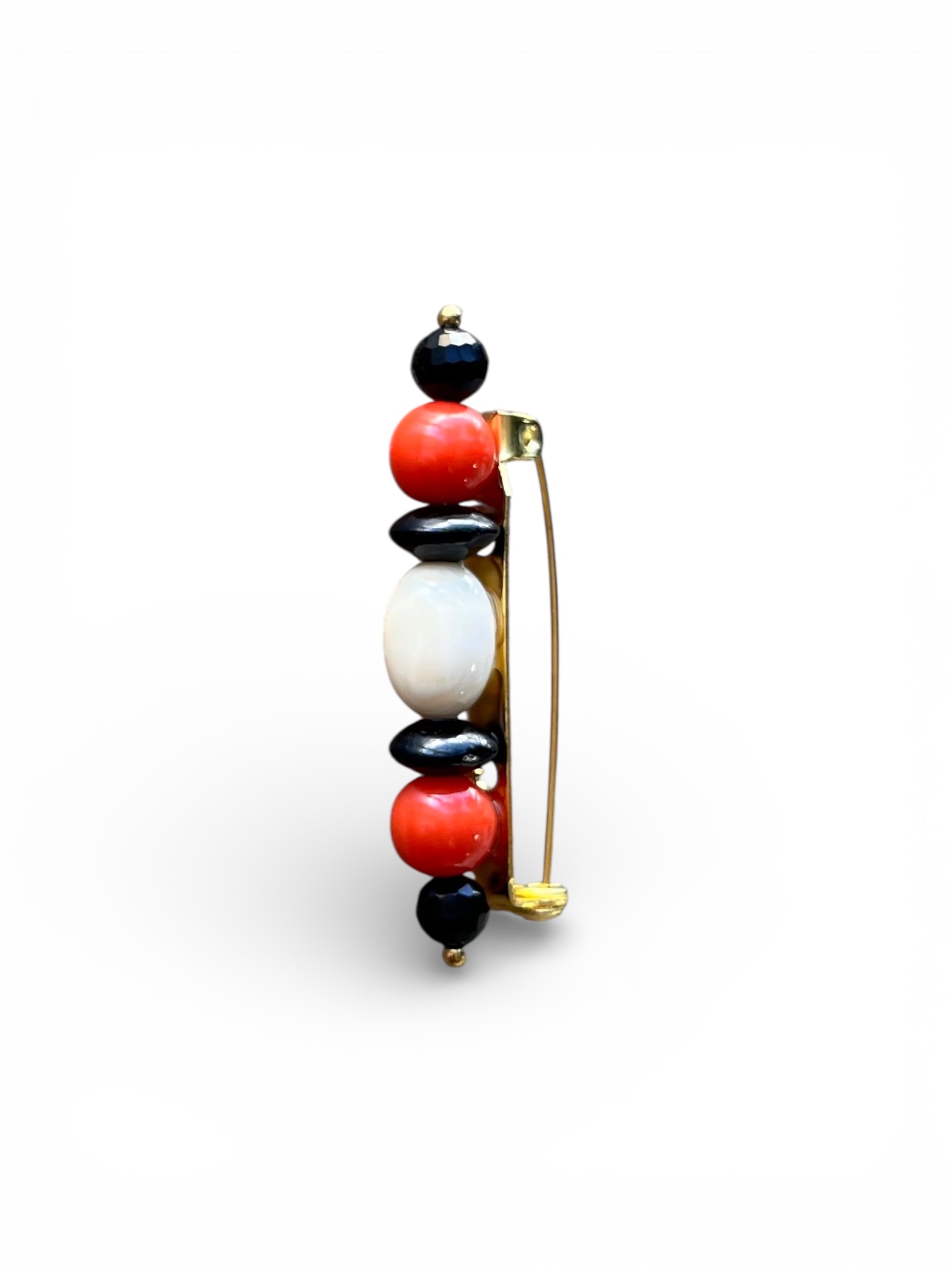 Cada broche está elaborado de manera artesanal, cuidando la composición de las cuentas para conseguir un acabado equilibrado y favorecedor.