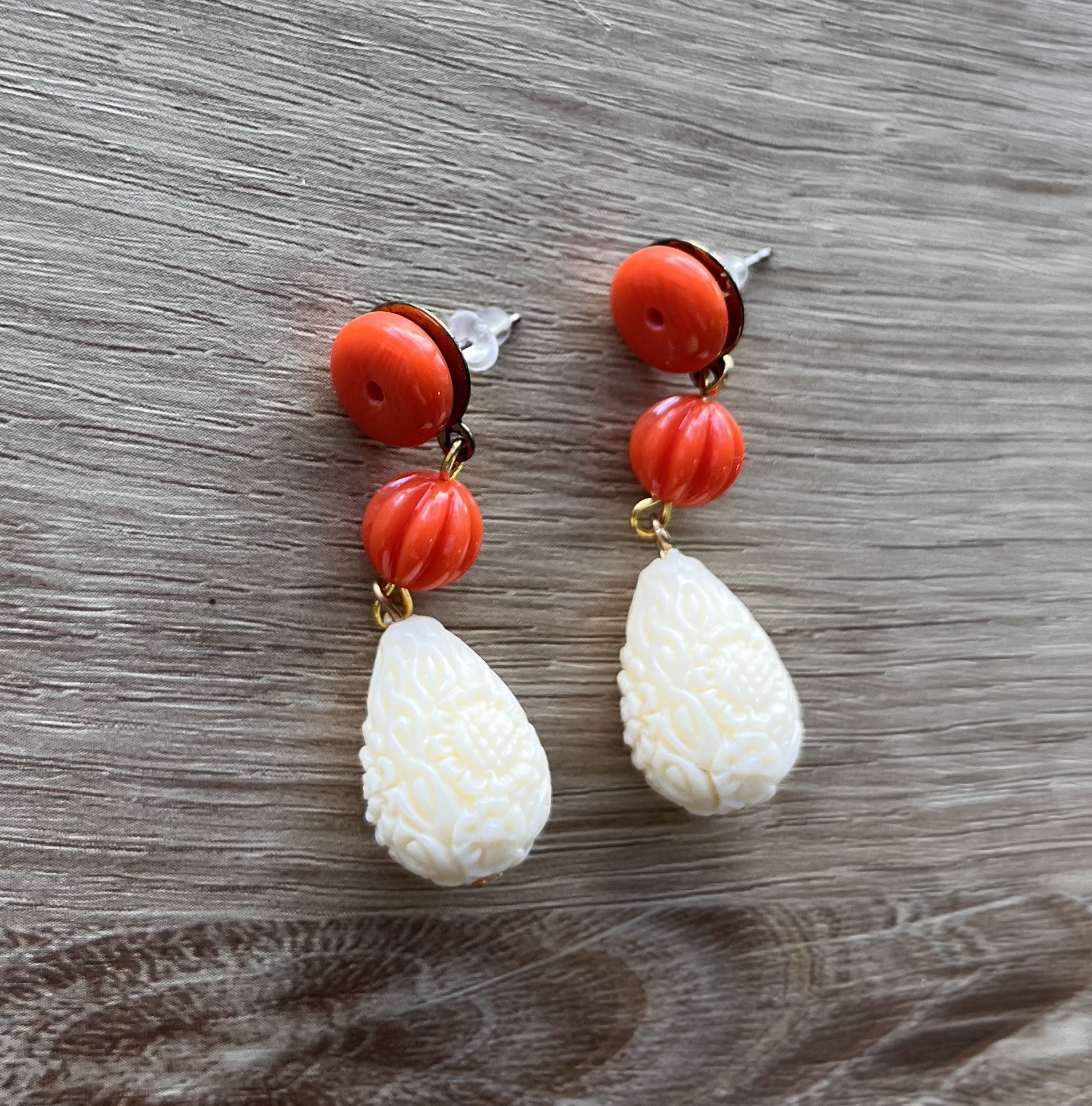Su diseño combina cuentas en tono coral y hueso una combinación clásica y muy favorecedora que aporta fuerza, contraste y elegancia al conjunto.