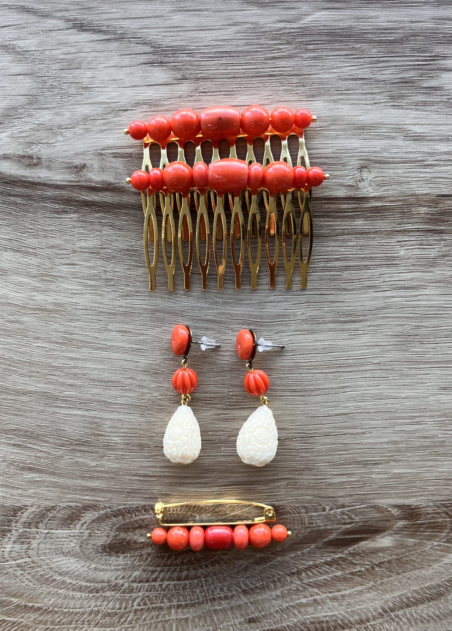 • Conjunto completo: peina + pendientes + broche