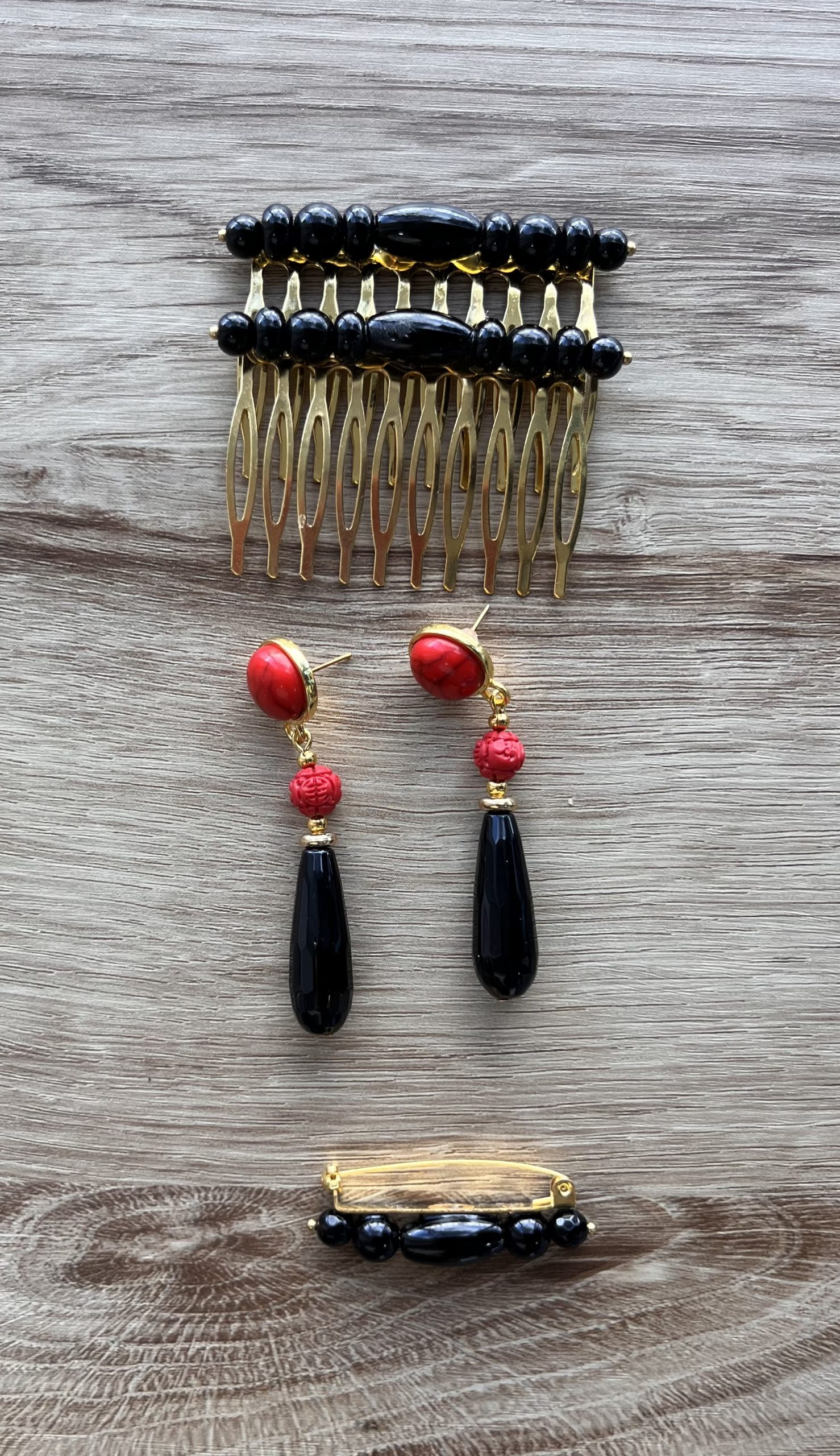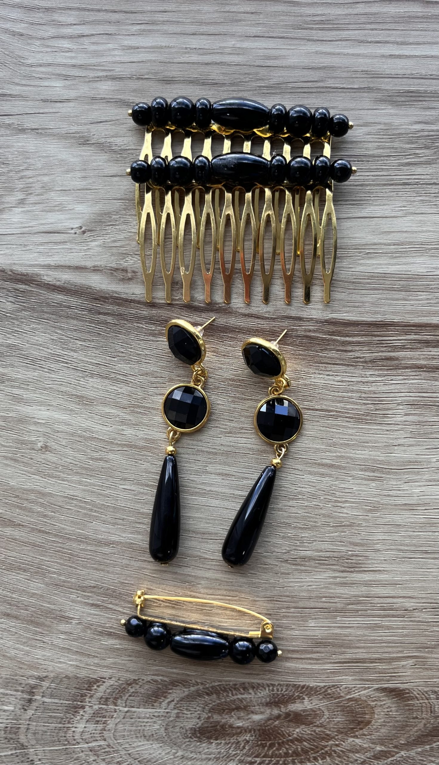 • Conjunto completo: peina + pendientes + broche