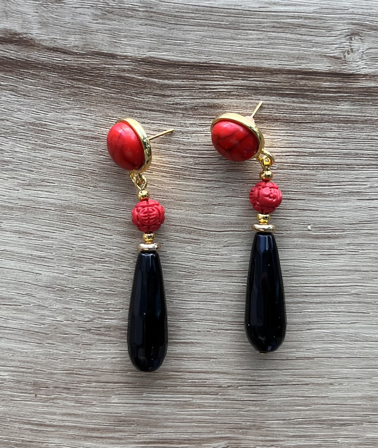 Su diseño combina cuentas en tono coral y negro, una combinación clásica y muy favorecedora que aporta fuerza, contraste y elegancia al conjunto.