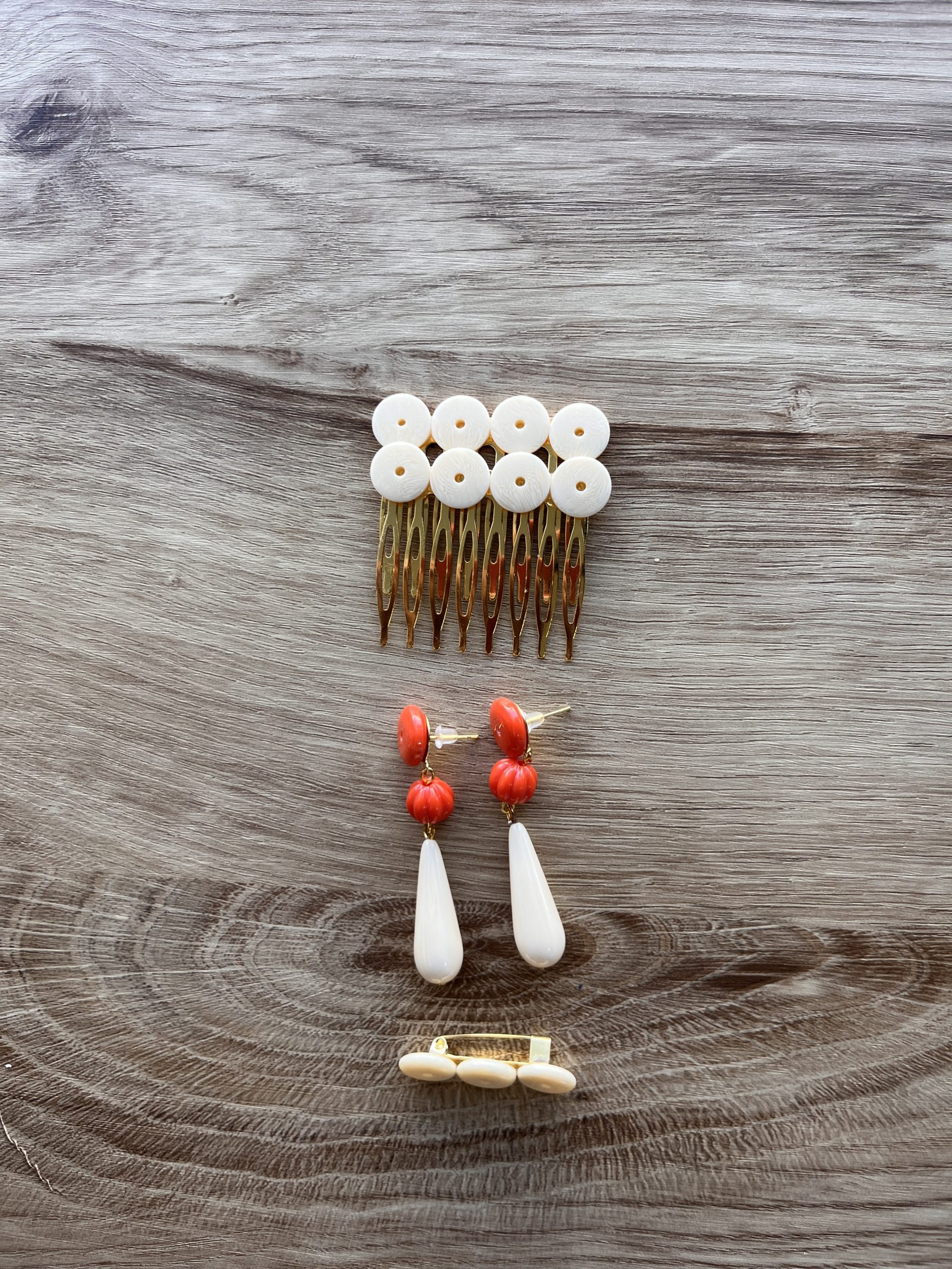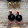 Conjunto flamenco artesanal compuesto por peina flamenca, pendientes flamencos y broche, elaborado a mano cuidando cada detalle para conseguir un acabado único y especial.