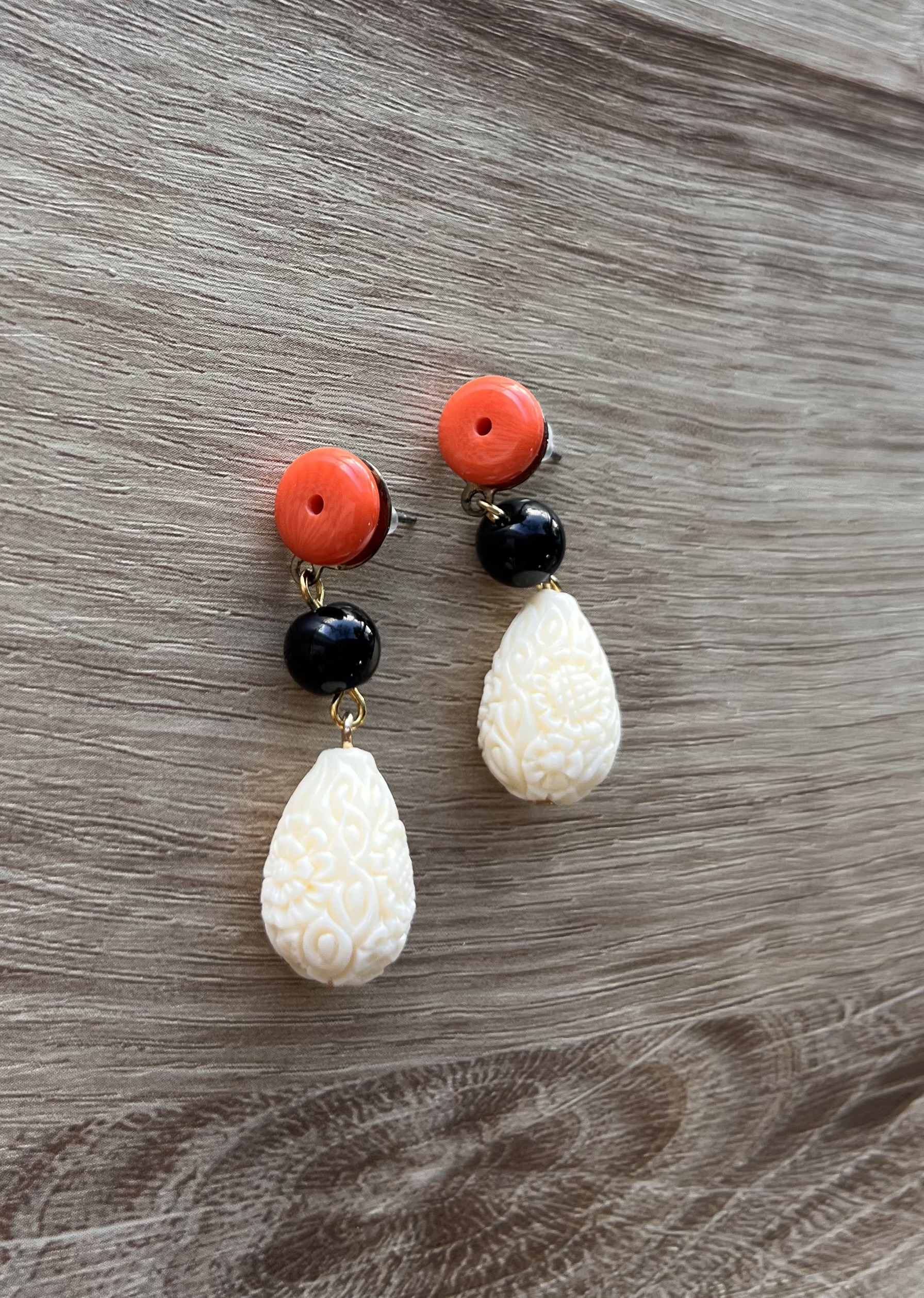• Combinación de colores coral, negro y hueso