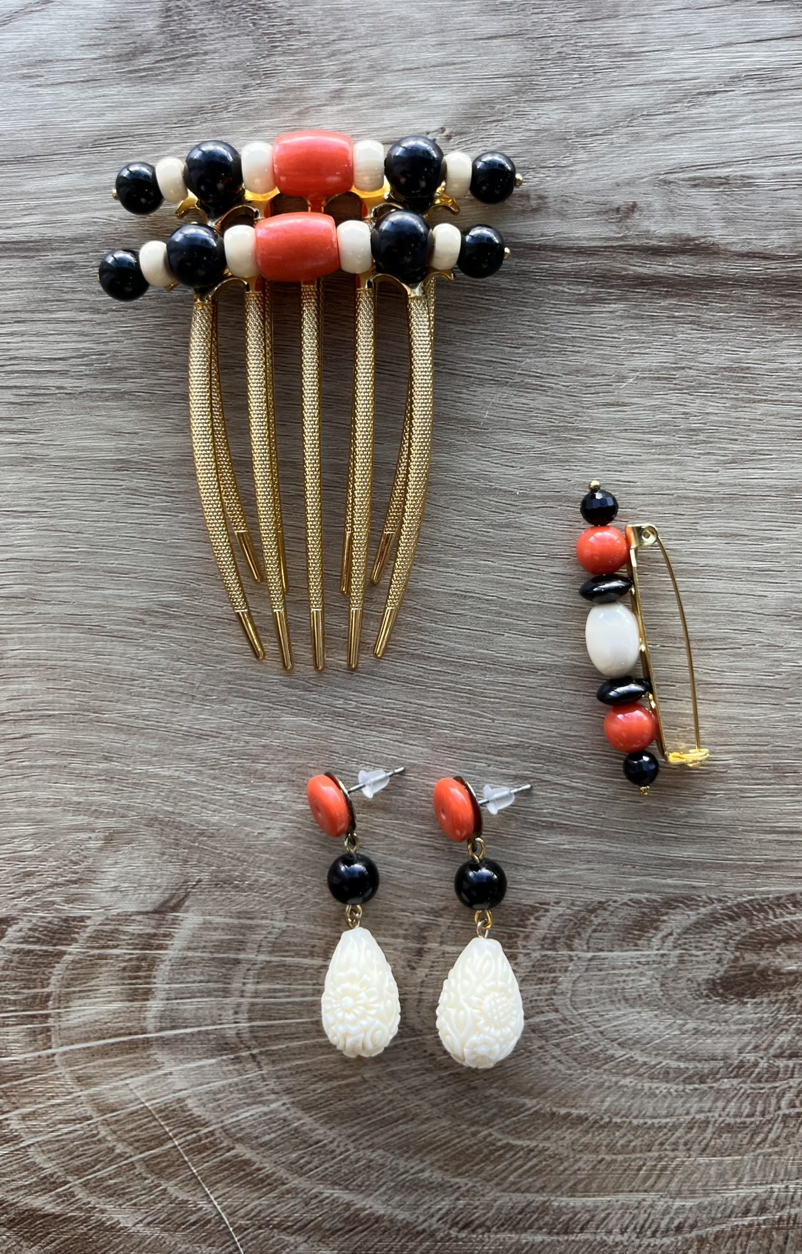 • Conjunto completo: peina + pendientes + broche