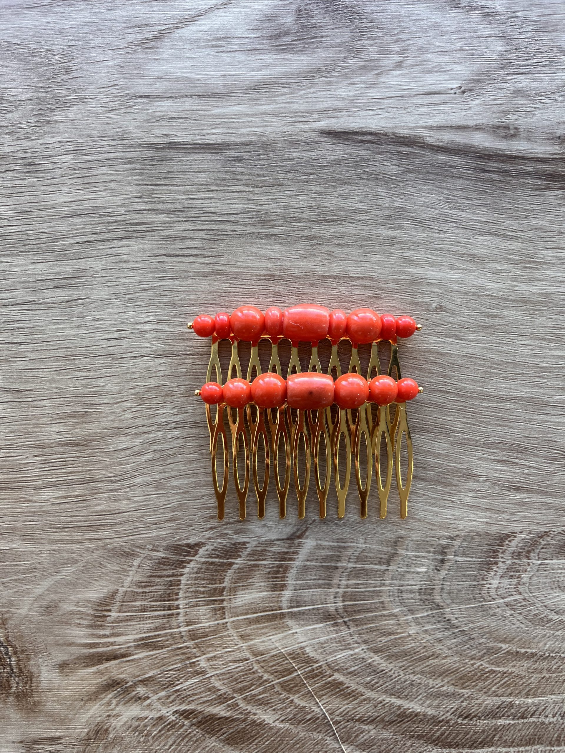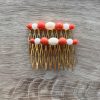 Su diseño combina cuentas en tono coral y hueso ,muy en tendencia esta temporada, que aporta luminosidad y elegancia al conjunto. Los acabados dorados realzan el diseño y lo convierten en un complemento flamenco actual y fácil de combinar.