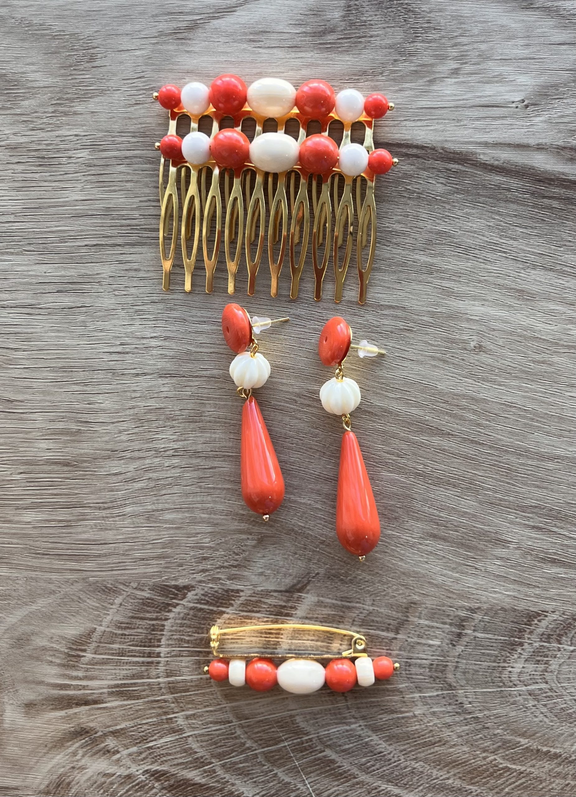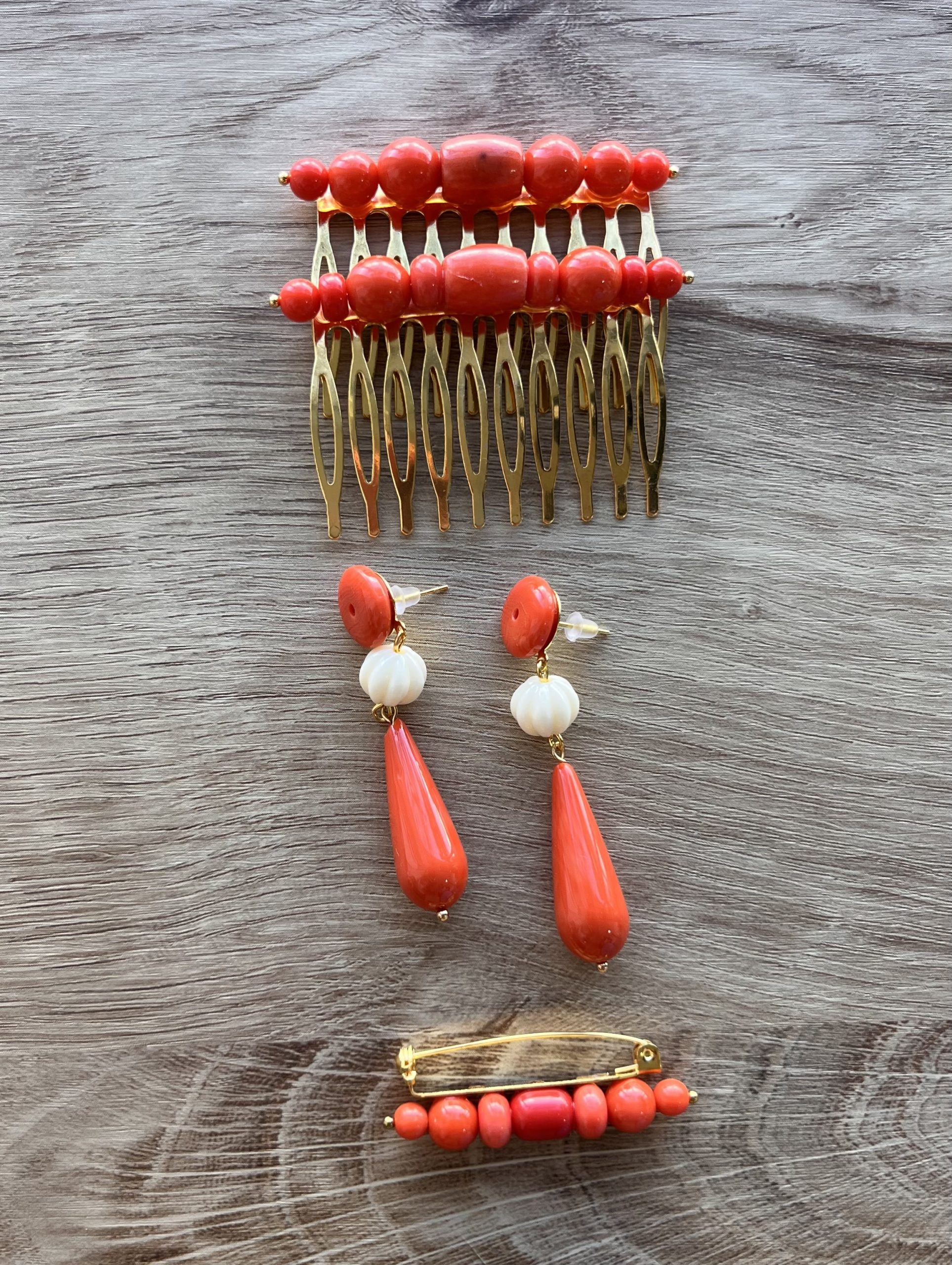 • Conjunto completo: peina + pendientes + broche