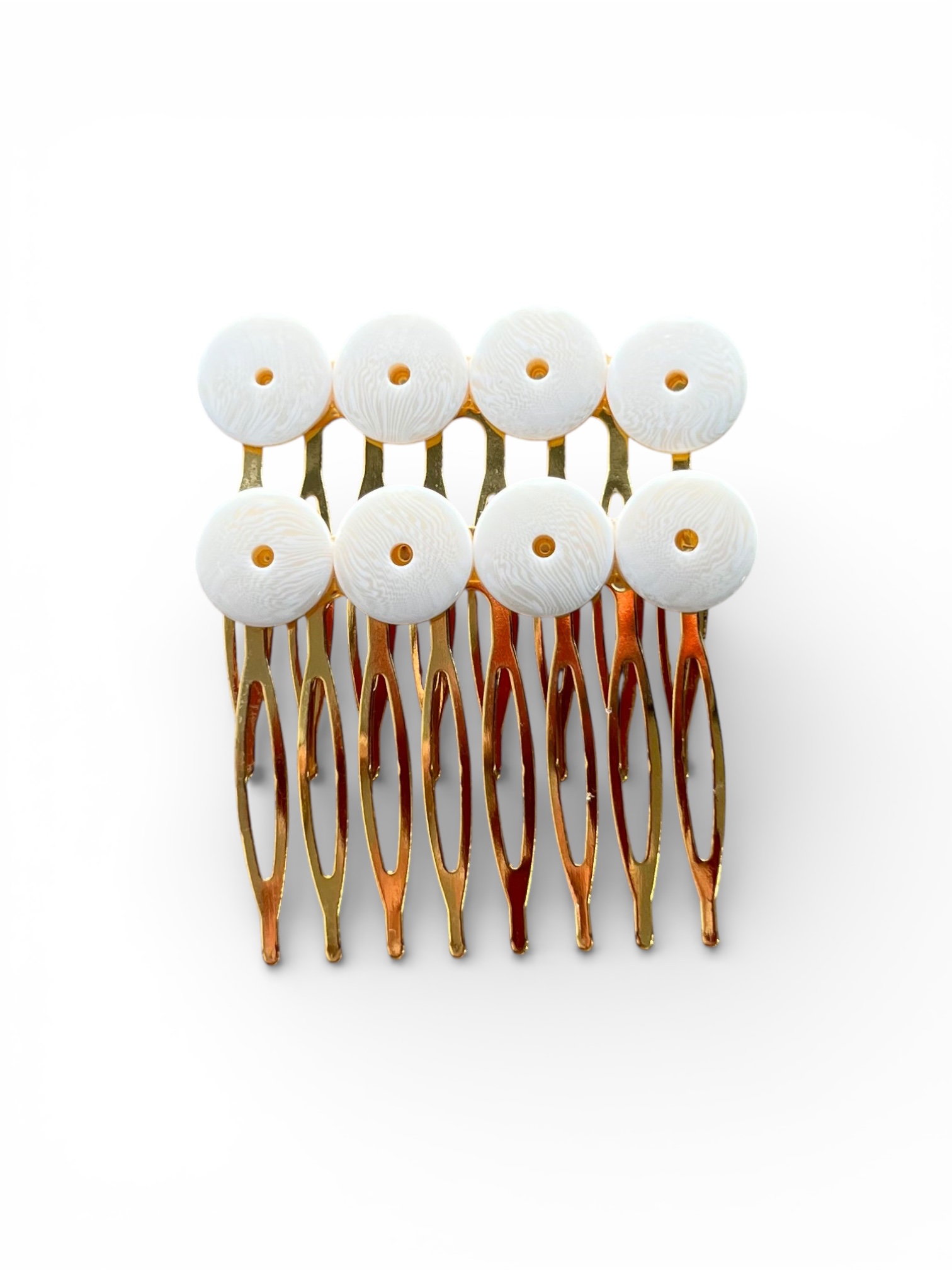 Sentirás cómo el suave tacto de la peina se ajusta a tu cabello, elevando tu perfil con la elegancia que solo el hueso puede otorgar. Los pendientes, con su vibrante coral y su péndulo de gota en hueso, bailarán al compás de cada paso por el albero, reflejando el fulgor del atardecer sobre el río. Cada movimiento será una caricia, una danza entre el metal dorado y la textura sedosa de las piezas, que capturarán miradas y murmullos en el corazón de la caseta, mientras el aroma a azahar te envuelve y el ruido de palmas resuena a tu alrededor. Es la sensación de pertenecer, de ser parte de esa magia efímera y eterna. El broche, un detalle sofisticado, se posará armoniosamente en tu traje o mantoncillo, aportando un punto de luz y exclusividad, como un rayo de sol que se cuela entre los naranjos del Patio de los Naranjos.