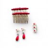 «La peina, con un ancho aproximado de 6-8 cm y una altura de 5-6 cm (dientes incluidos), es perfecta para realzar el moño, aportando volumen y presencia sin sobrecargar. Los pendientes, de unos 4-5 cm de longitud, son ideales para estilizar el cuello y enmarcar todo tipo de rostros, desde los más ovalados a los más angulosos. El broche, de 5-6 cm, permite múltiples usos para embellecer un escote, un mantón o cualquier detalle de tu traje.»