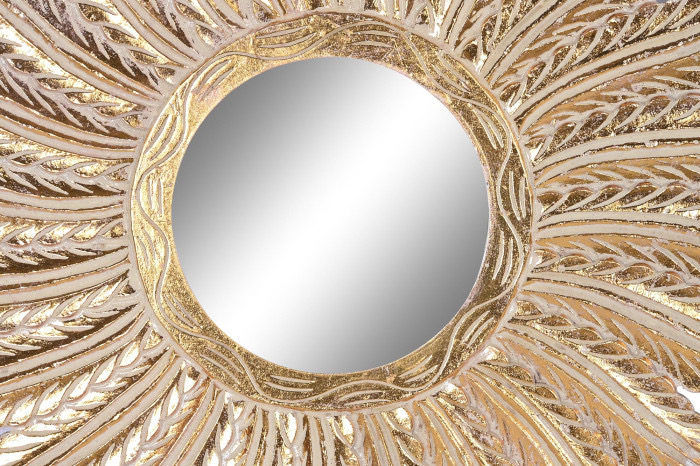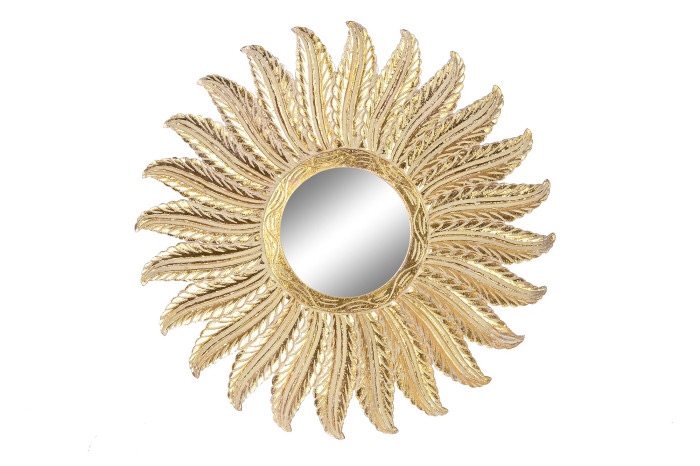 Espejo Mango Cristal Plumas Decapé Dorado
