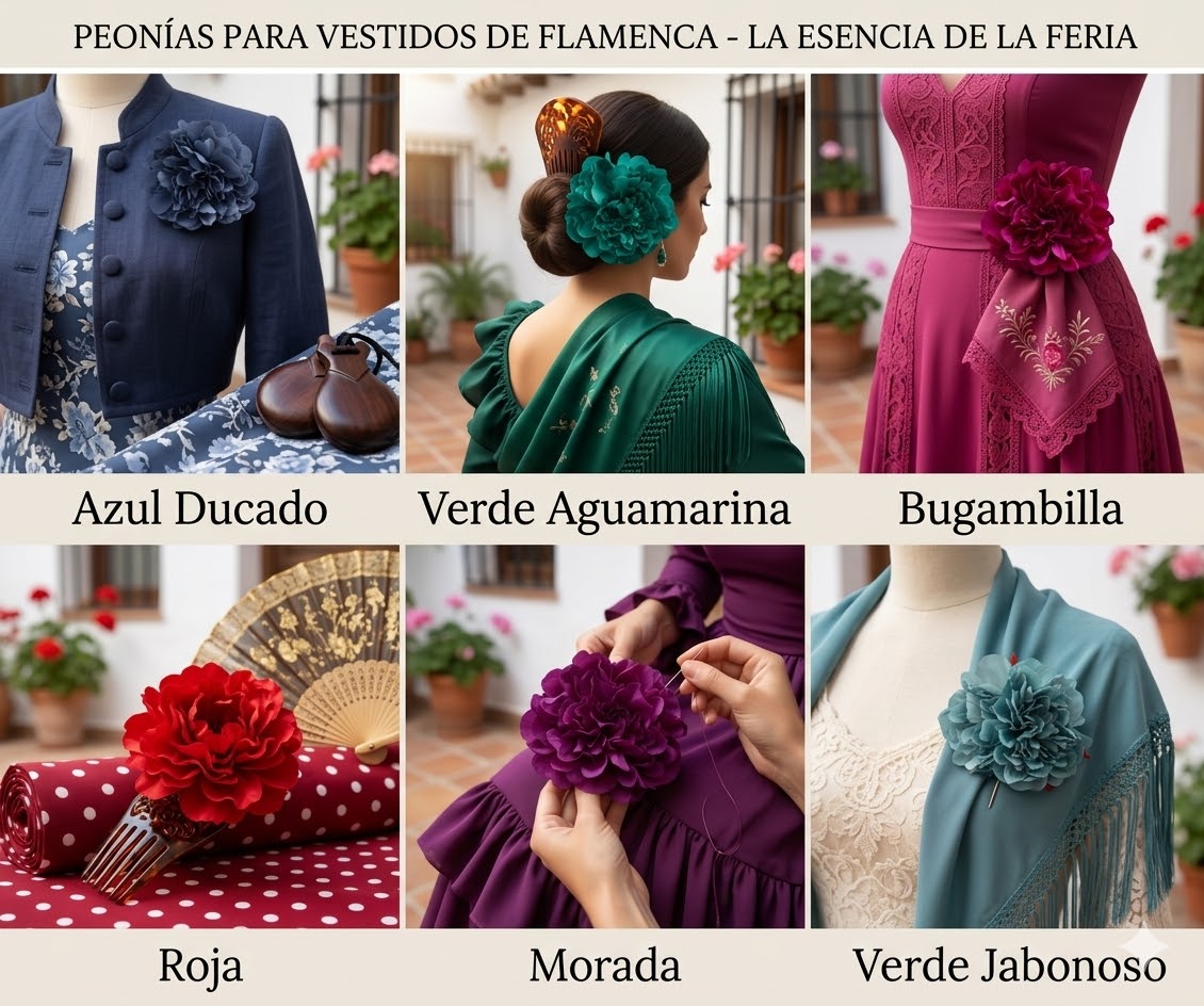 - Eleva tu estilo, realza tu belleza: Más allá del traje de flamenca, esta peonía se adapta con gracia a looks más sencillos, como un vestido liso o incluso un vaquero con camisa blanca para un día más relajado en el Real. Su presencia en azul Ducado eleva cualquier conjunto, definiendo tu elegancia sin esfuerzo, como el aroma del jazmín al caer la noche.