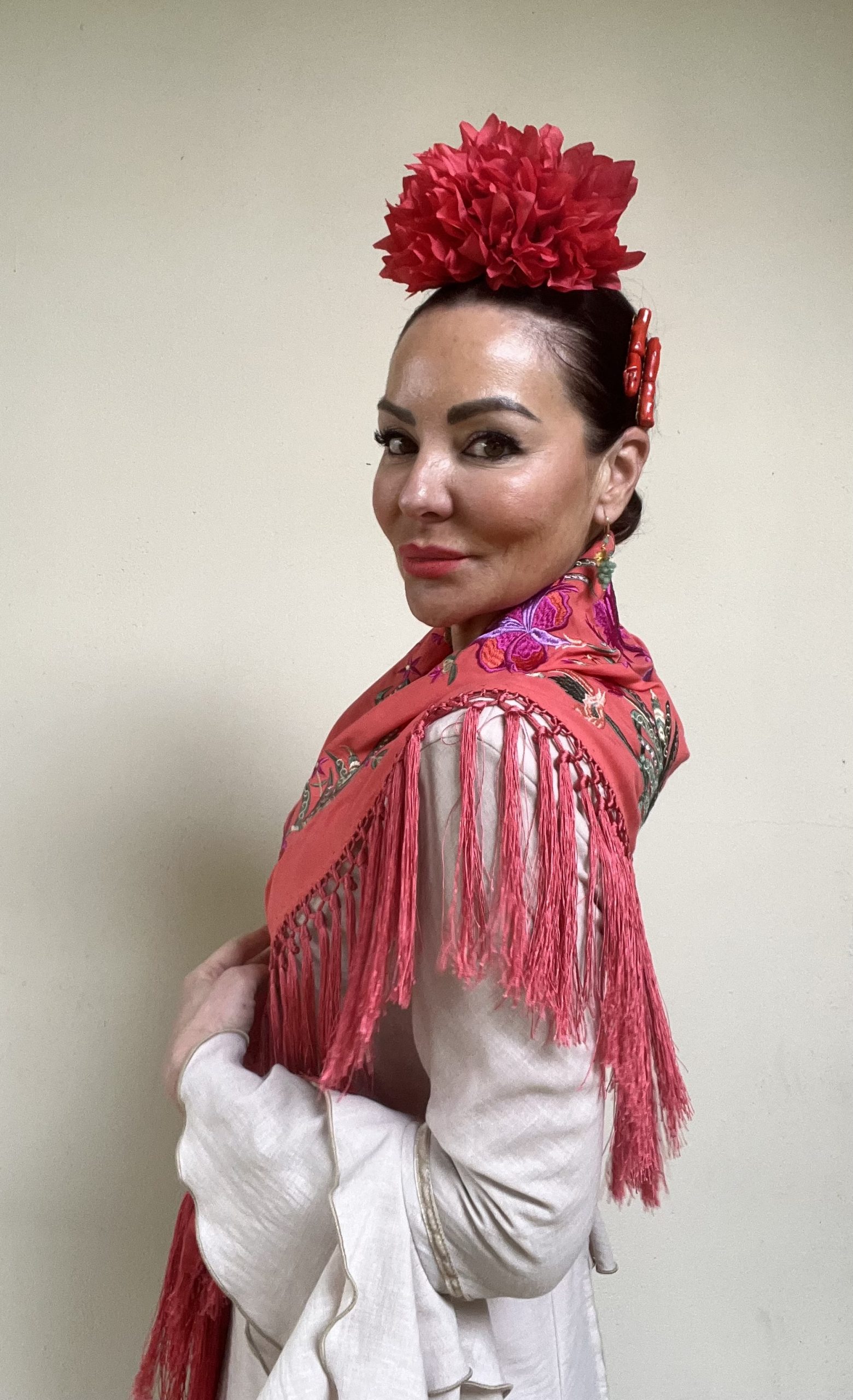Un complemento versátil que se adapta tanto a estilismos flamencos como a outfits más formales, combinando fácilmente con vestidos lisos, trajes regionales y conjuntos de fiesta.