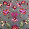 Este mantón bordado de seda destaca por su confección artesanal y su diseño elegante y atemporal. El bordado floral aporta relieve y sofisticación, mientras que el fleco borlón de seda ofrece un acabado tradicional, con buena caída y movimiento equilibrado.