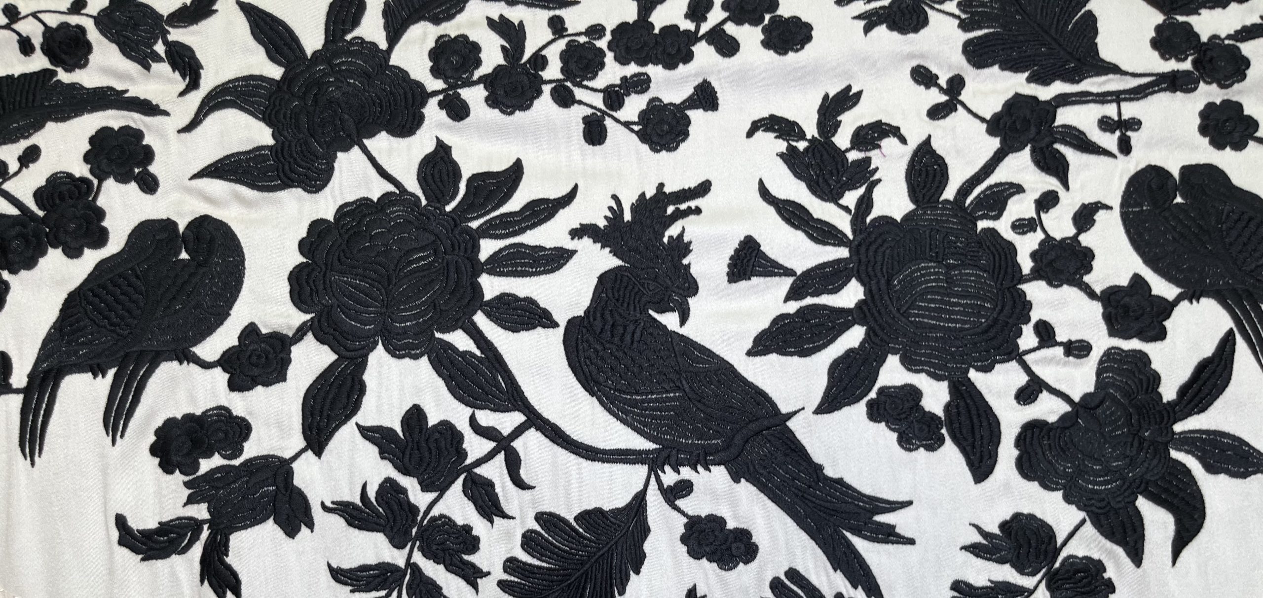 Este mantón bordado en seda 100% es una pieza de gran presencia que combina tradición, artesanía y diseño exclusivo. Su exquisito bordado floral y de aves en hilo de seda, realizado con gran detalle, aporta relieve, profundidad y sofisticación, convirtiéndolo en un complemento capaz de elevar cualquier estilismo.