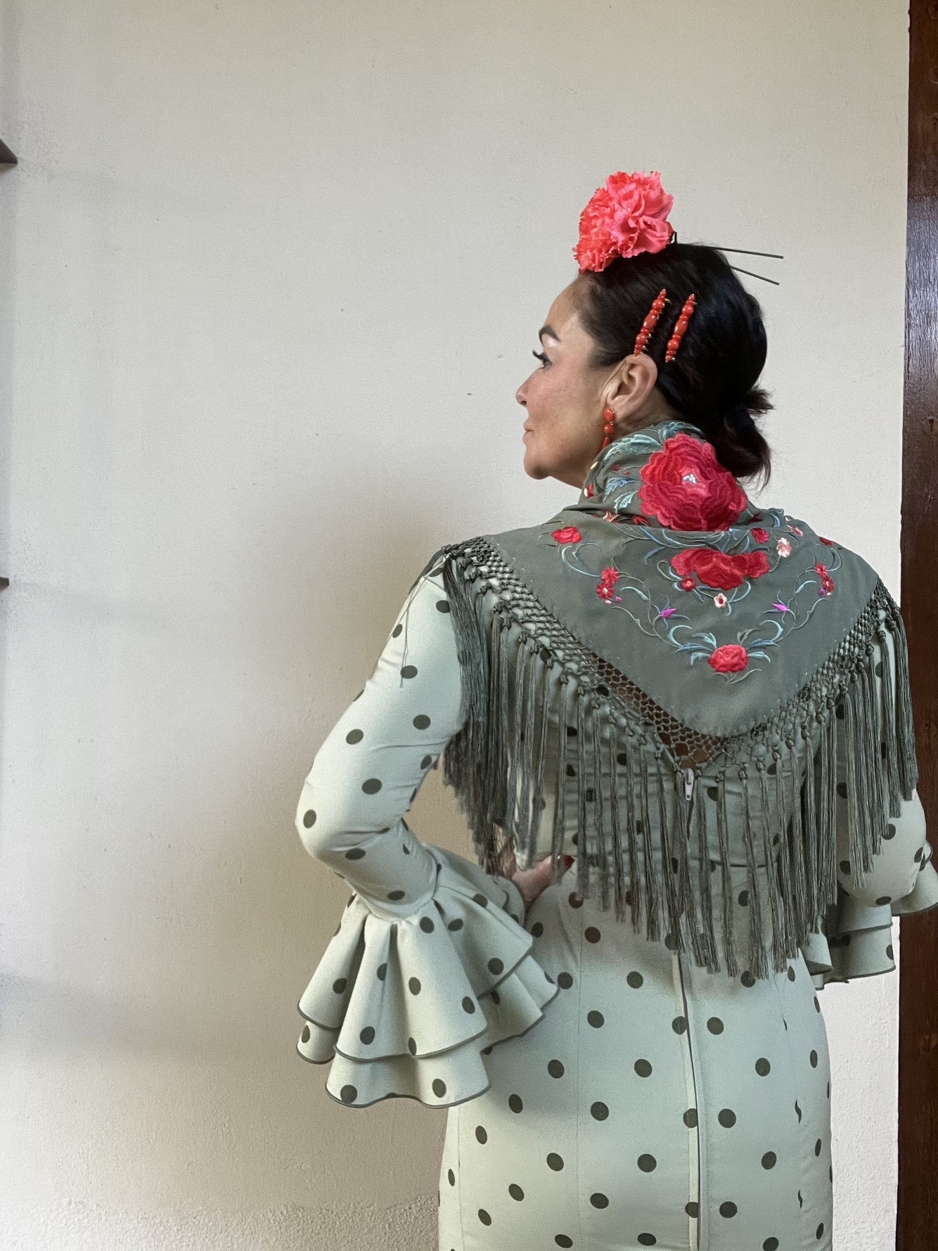 Un mantón elegante y favorecedor, ideal para completar tu traje de flamenca o aportar un toque andaluz y distinguido a cualquier look.