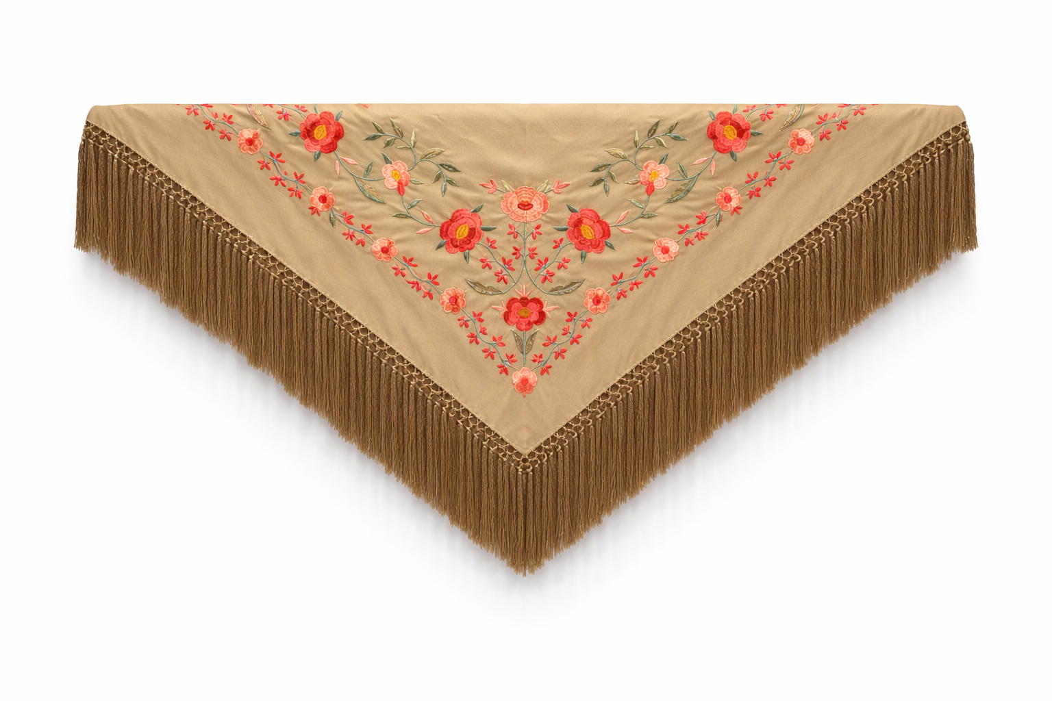 El Mantón Rectangular de Seda Bordada 75×75 “Arena Coral” ha sido seleccionado como nuestra pieza estrella por su elegancia, versatilidad y acabado artesanal impecable.