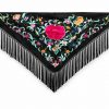 Tejido Noble: La combinación de viscosa y sedas de alta calidad garantiza que los flecos no se apelmacen y que el mantón mantenga su sitio, ya sea cruzado al talle o sobre los hombros.