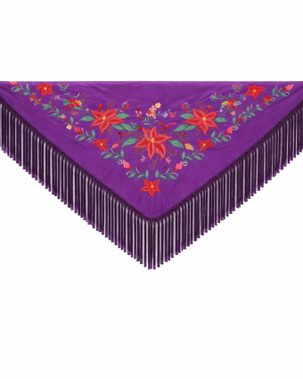 La seda natural proporciona brillo, suavidad y movimiento. El bordado en seda garantiza definición y riqueza visual, convirtiendo este mantón en una pieza de alta categoría.