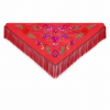 Medidas aproximadas y su versatilidad: Este mantón triangular tiene una anchura de 1,30 metros (sin flecos) y un largo vertical de 65 cm (sin flecos), con 22 cm de flecos. Su diseño es ideal para la mayoría de alturas y complexiones, realzando la figura con su elegante caída. El largo total, incluyendo los flecos, es de 87 cm.