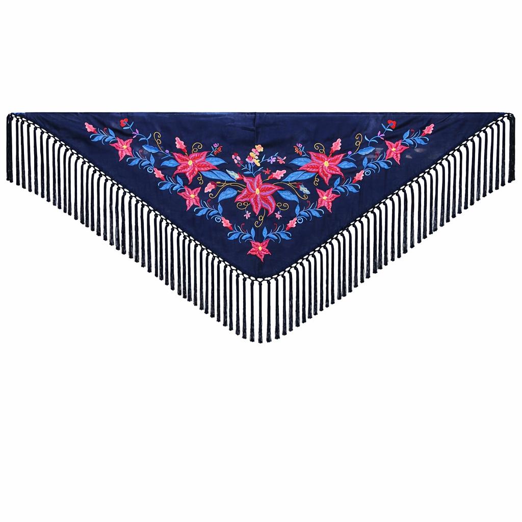 Mantoncillo Flamenca Mini Azul Oscuro – Bordado Rosa Turquesa