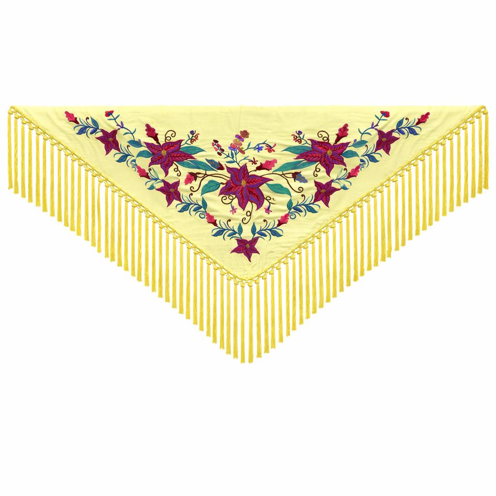 Mantoncillo Flamenca Mini Amarillo – Bordado Rosa y Azules