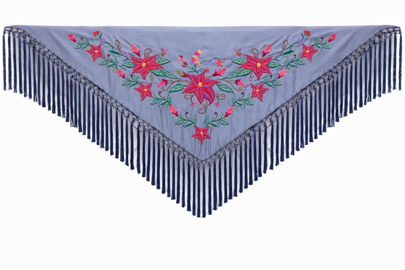 Mantoncillo Flamenca Mini Añil Suave – Bordado Rosa Verdes