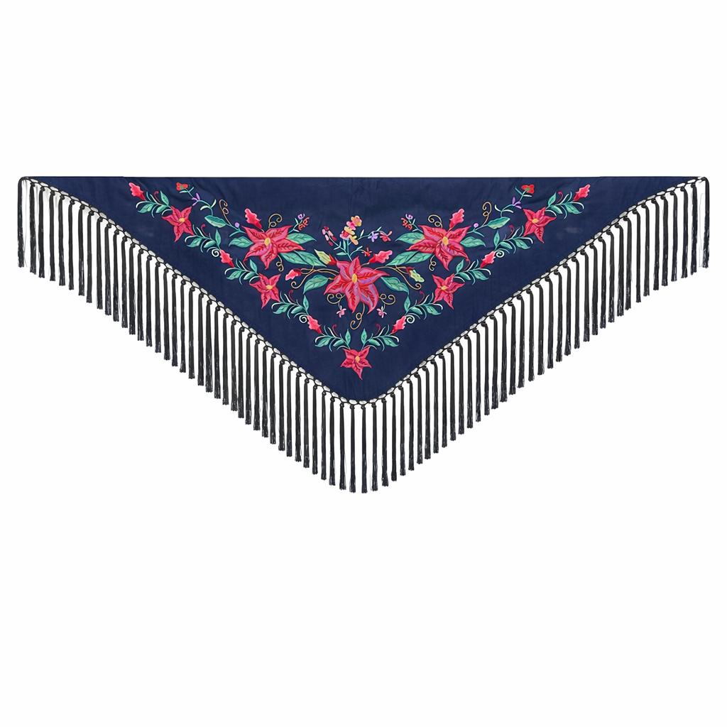 Mantoncillo Flamenca Mini Azul Oscuro – Bordado Rosa Verde