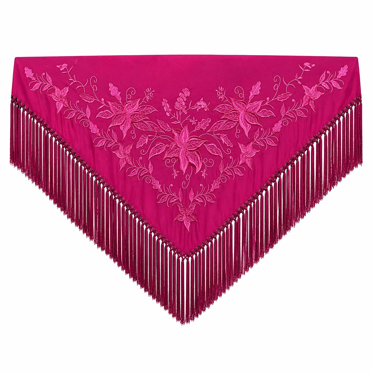 Desde la primera vez que pises el albero de la feria de Málaga, el real de Códoba o Jaén, en esa primera noche en la Caseta, el mantoncillo buganvilla Flor Imperial será tu alma gemela. Es el color de un atardecer andaluz que se tiñe de vida, de la pasión que brota al compás de bulerías y sevillanas. Es la promesa de una noche eterna, donde cada giro de tu cuerpo cuenta una historia y cada fleco baila a tu son, bajo los farolillos que iluminan el camino.