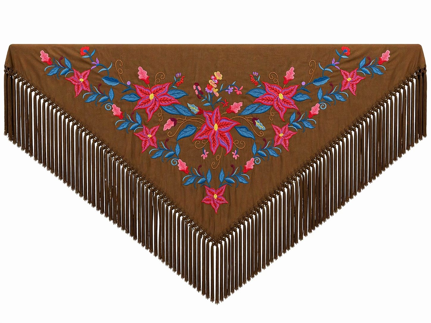 Siente el peso justo sobre tus hombros, esa caricia suave del tejido que acompaña cada paso por la tierra albero de la Calle del Infierno en Córdoba. Los flecos, danzarines y seductores, trazan historias en el aire con cada giro, cada saludo, bajo el cielo estrellado de una caseta en Jaén. El color Chocolate, profundo y sofisticado, arropa los vibrantes bordados Flor Imperial en tonos fucsia, rojo y un azulón eléctrico que estalla con vida, reflejando la alegría contagiosa de la feria. Este mantoncillo no solo te viste, te transforma en el alma de la fiesta, en la esencia misma de Andalucía, vibrando con cada palma y cada compás.