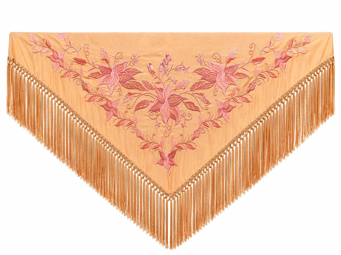 Imagina atravesar el bullicio de la feria de Málaga, el aroma a jazmín y espetos danzando en el aire al caer la tarde, o el rumor devoto de las carretas en una romería andaluza. El sol de Poniente tiñe de oro los farolillos y tu mantoncillo Flor Imperial, en un coral suave que evoca los atardeceres de tu tierra, baila contigo. No es solo un accesorio; es ese compañero que te viste de seguridad, de alegría y de la más pura esencia flamenca, el que te hará sentir única en cada paso de albero, en cada saludo, en cada instante que se convierte en recuerdo eterno.