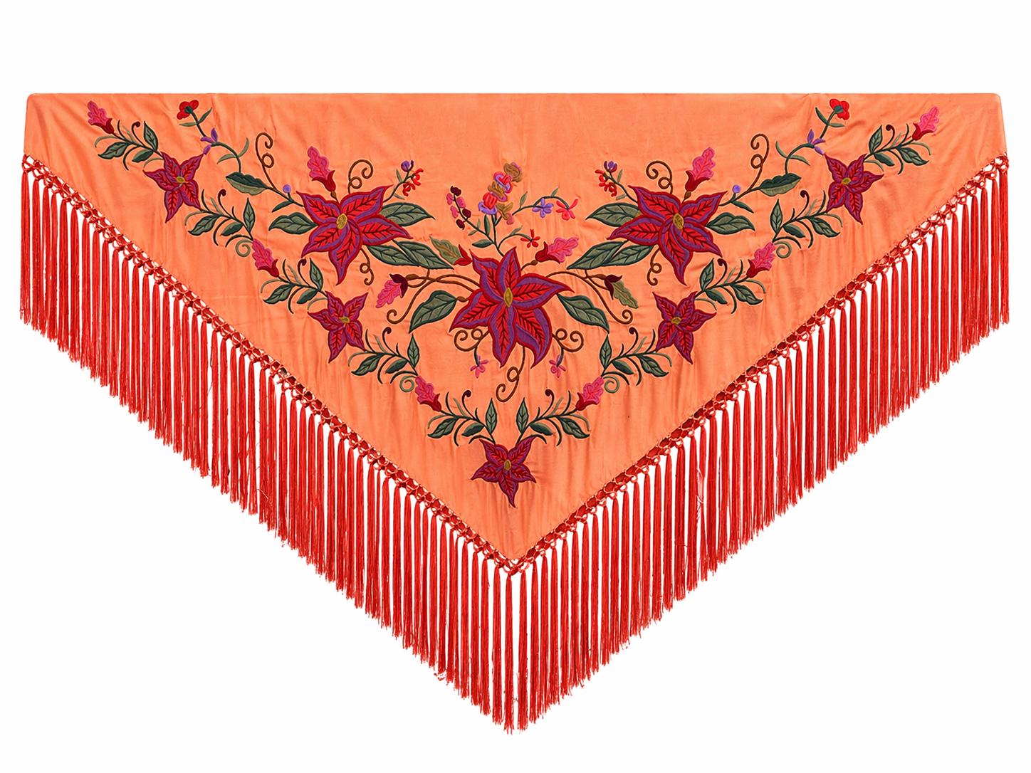 Este mantoncillo es el alma de una jornada inolvidable, desde el aroma a rebujito en el aire hasta el tintineo de los vasos, el murmullo de las risas y el compás de unas sevillanas improvisadas. Su color coral, poderoso y femenino, se funde con la calidez del bronceado y la luz de esos atardeceres andaluces, evocando la pasión de nuestras tierras. Un color que te permite arriesgar, que te eleva y que te asegura ser tú misma, única y radiante. Siente cómo sus flecos, vivos y con cuerpo, se mecen con cada paso, convirtiendo la caminata por el recinto ferial o el sendero romero en una danza sutil que te distingue y te embellece.