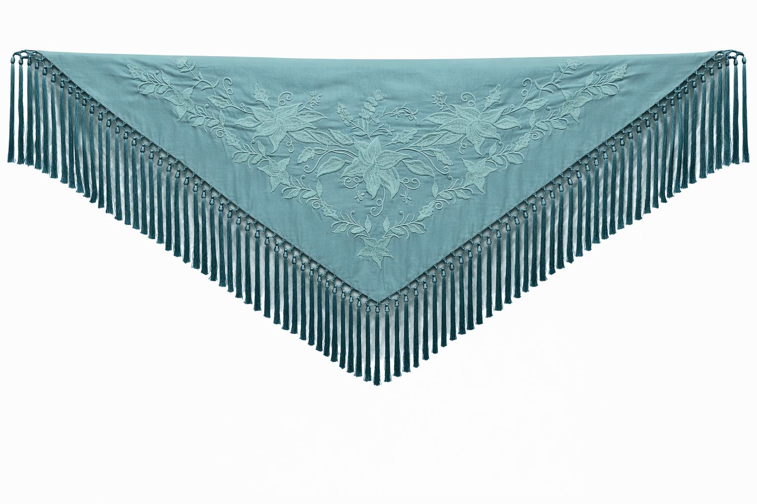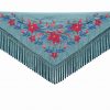 Que tu entrada al Real de la Feria de Córdoba o al recinto ferial de Jaén irradie la frescura de una mañana de abril, envuelta en la delicadeza de tu mantoncillo turquesa claro. Este mantoncillo Ana Faura está llamado a ser ese recuerdo imborrable, la joya de tus fotografías, la esencia de lo que te hace sentir plena y flamenca en cada baile y cada saludo.
