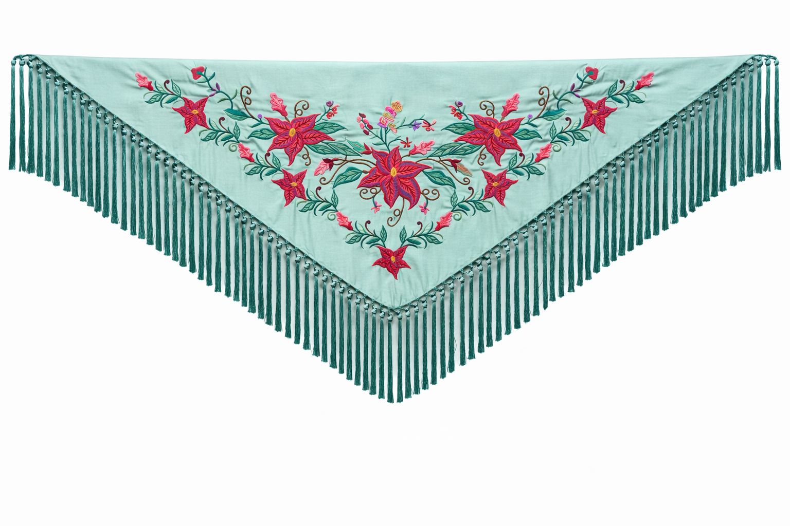 Mantoncillo Flamenca Mini Turquesa Claro – Bordado Rosa Verde