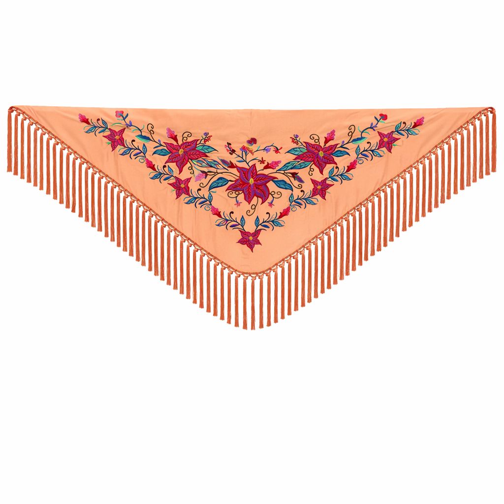 ¿Cómo cuidarlo para que te acompañe en muchas ferias? Para preservar su belleza, te recomendamos guardarlo extendido o enrollado suavemente, evitando doblarlo de forma brusca para que los flecos no se enreden. Desenrolla y alisa los flecos con los dedos antes y después de cada uso. Para su limpieza, aconsejamos la tintorería especializada para asegurar que los bordados y la seda mantengan su esplendor.