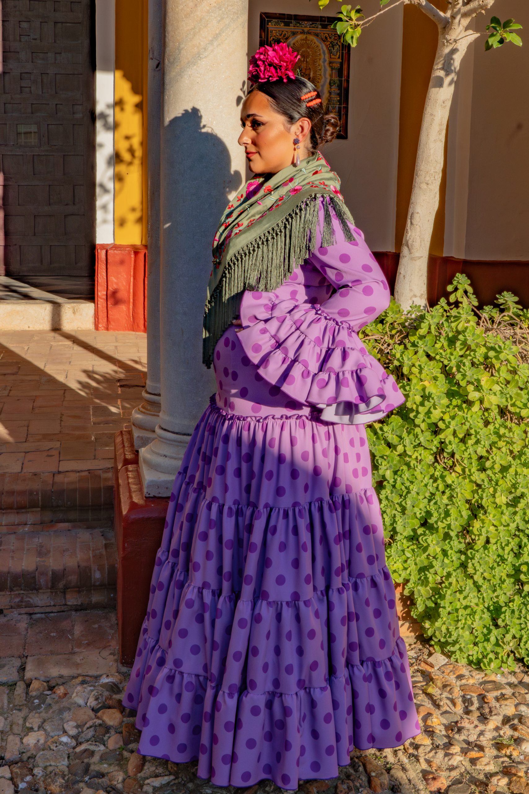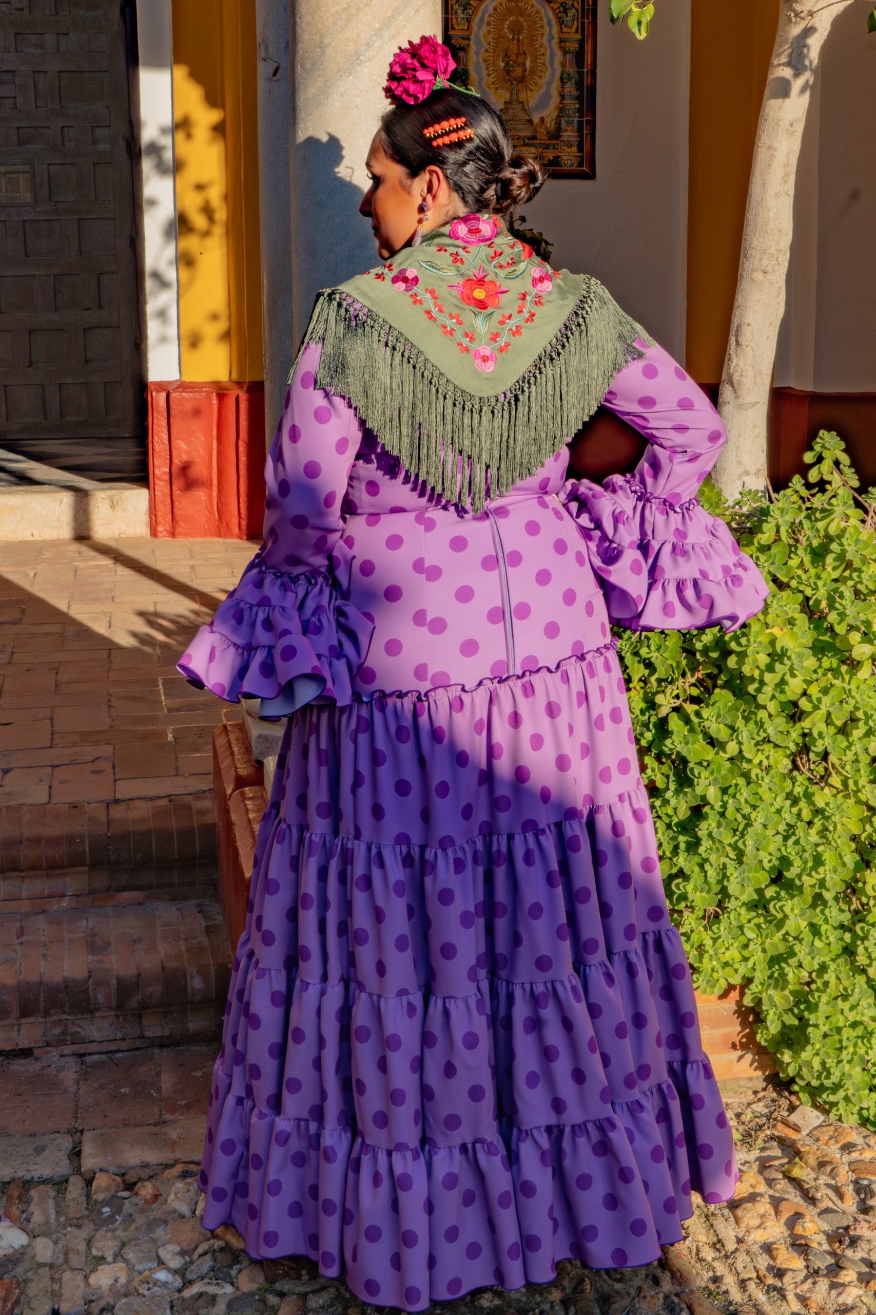 Un vestido flamenca diseñado para que una mujer talla 50–60 entre en la feria con comodidad, firmeza y elegancia.