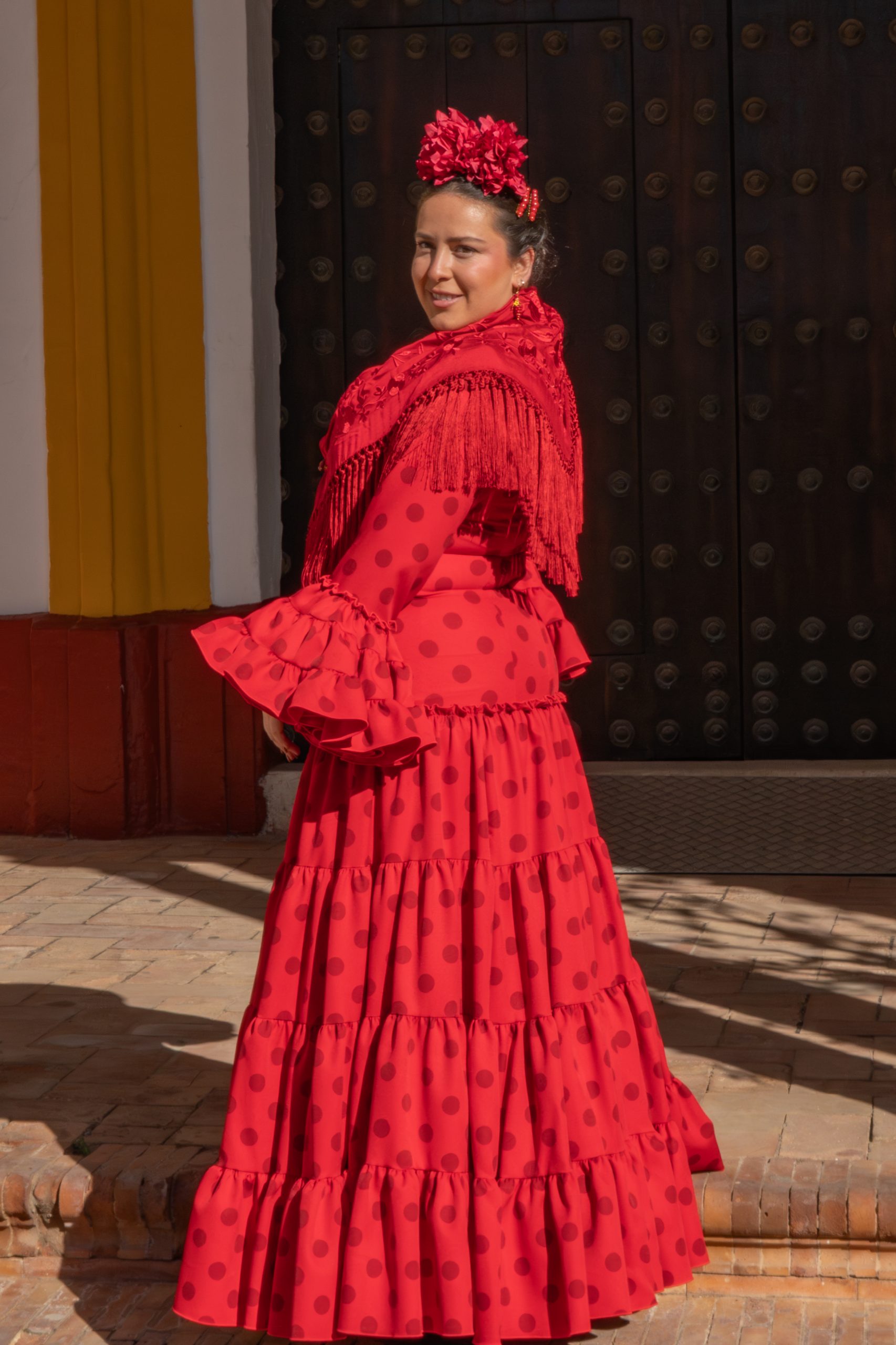 Un vestido flamenca diseñado para que una mujer talla 50–60 entre en la feria con firmeza, elegancia y máxima presencia.