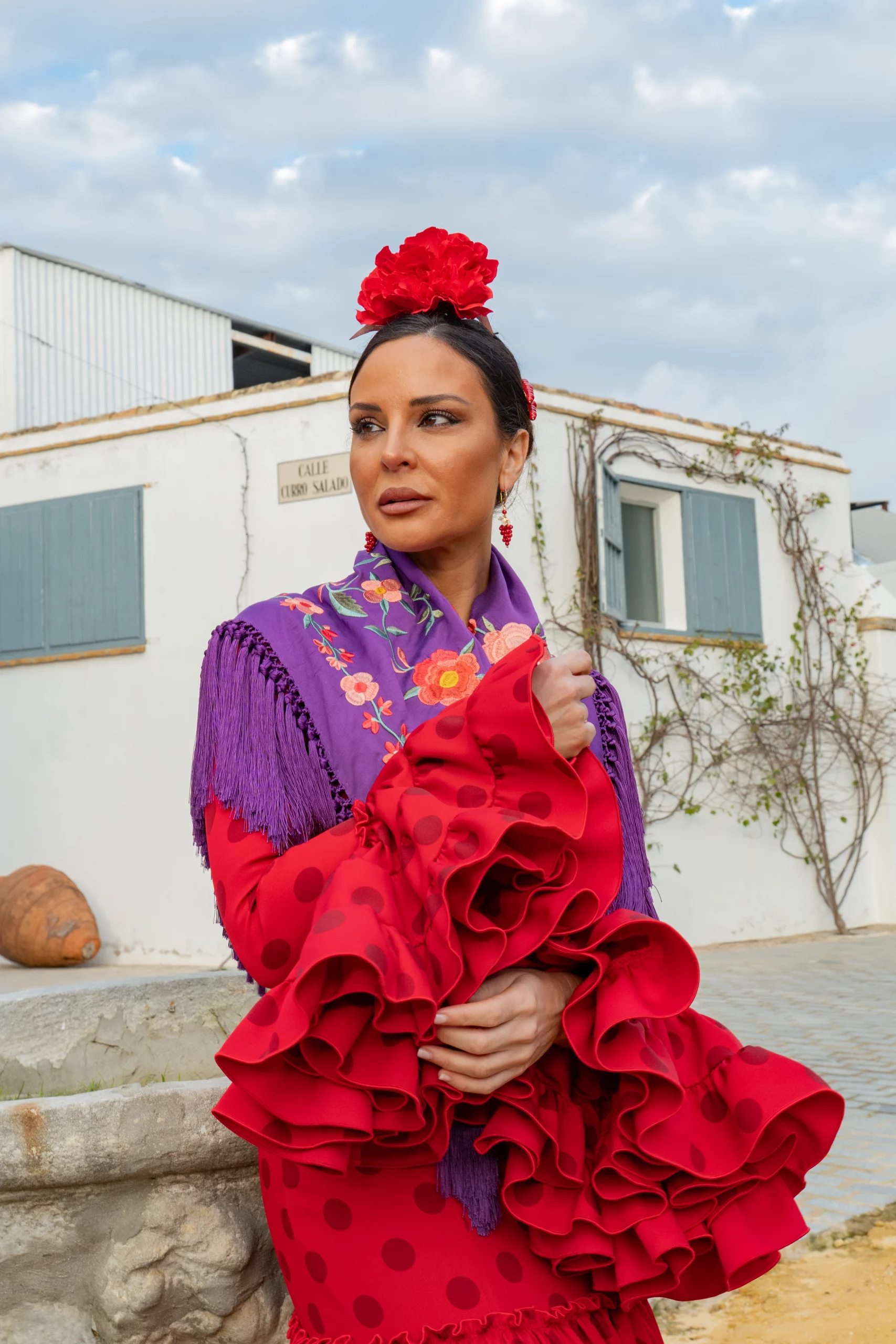 Traje de flamenca canastero de talle alto en Sevilla – Traje de gitana favorecedor.