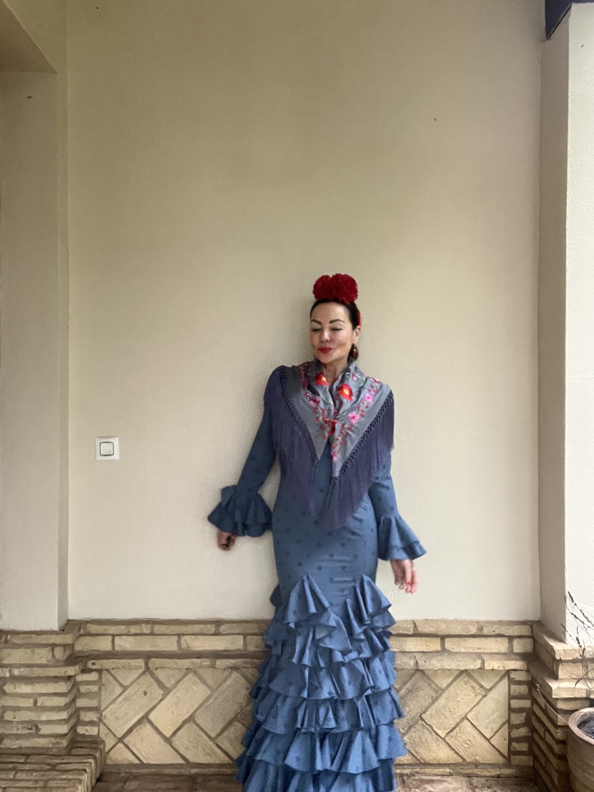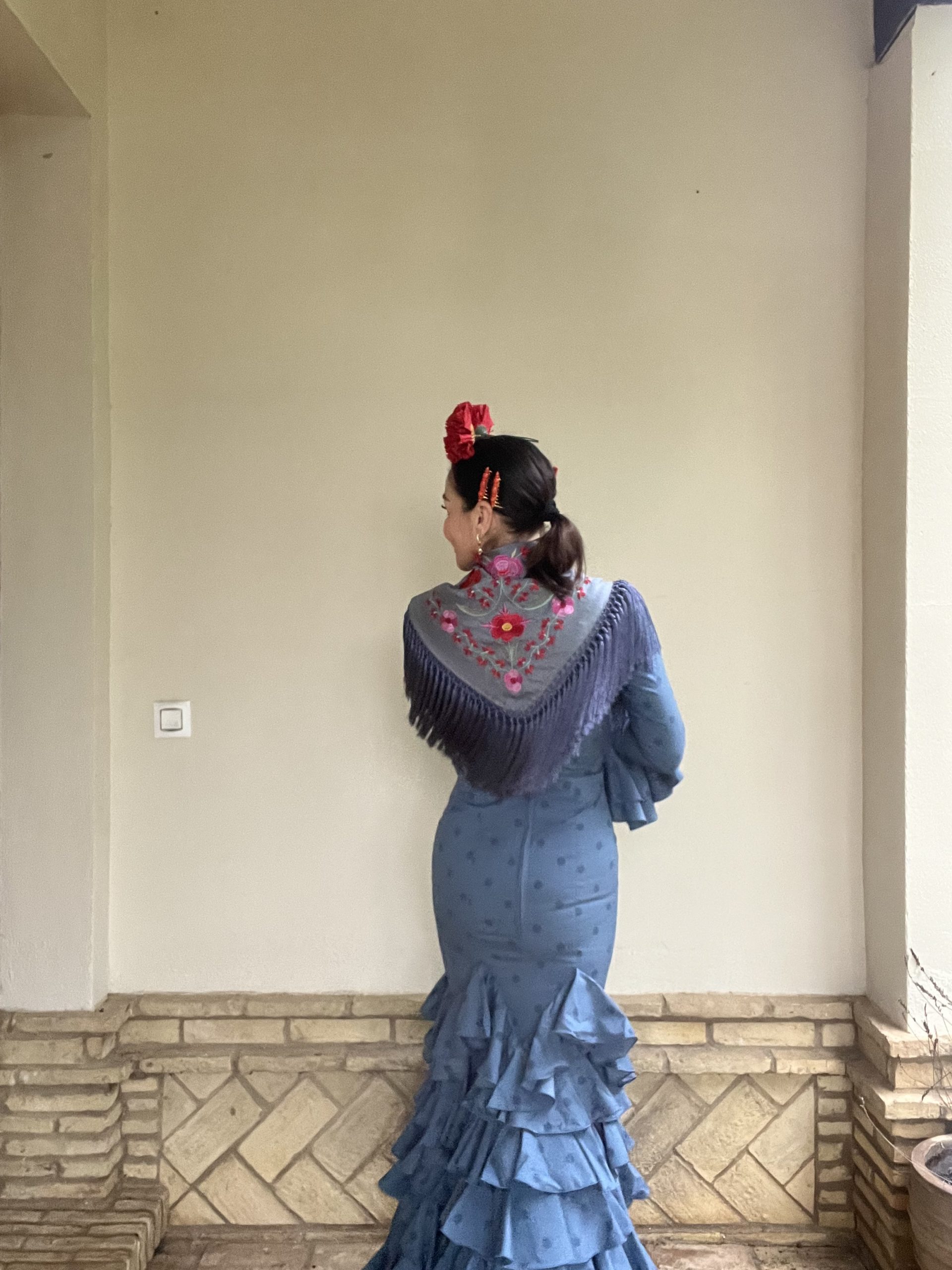 Vestidos confeccionados en Sevilla , con su enagua y bolsillo ,tejido bioelastico, con una ligera elasticidad que se adapta perfectamente a la silueta