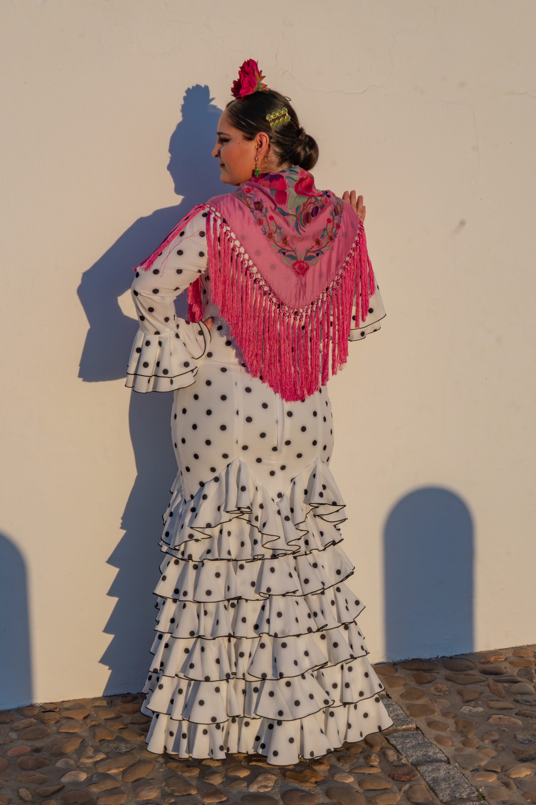 Pureza y Versatilidad: El blanco es el color más versátil. Es un lienzo de alta costura flamenca que te permite jugar con mantoncillos de flores, flecos en contraste o accesorios metalizados. Tú pones la personalidad, nosotros ponemos el patrón perfecto.