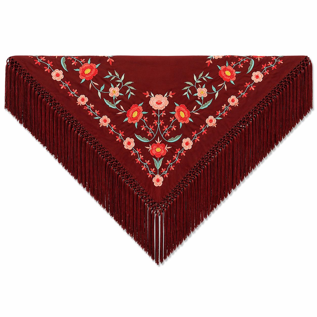 El latido de Andalucía en cada bordado: tu mantón burdeos y coral para brillar en la feria