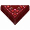 ¿Cuáles son las medidas exactas de este mantón y para qué complexión es ideal? Este mantón tiene un ancho de 150 cm y un largo total de 70 cm (incluyendo los flecos de 20 cm). Su diseño triangular y la longitud de sus flecos lo hacen versátil y favorecedor para cualquier altura y complexión, realzando la figura de forma elegante.