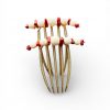 Su estructura dorada aporta firmeza y sujeción, mientras que la disposición en doble línea decorativa estiliza visualmente el recogido.